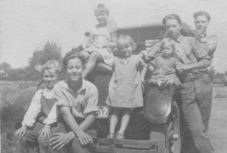 Dick is on the left; I believe the girl sitting to his right is his sister Ruth. His brother Leo is to his left, steadying the toddler. I cannot positively identify the others.