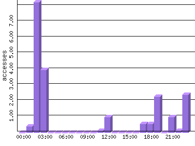| Hour | Accesses | % | Bytes | % | Bits/Sec | Bytes/Sec |